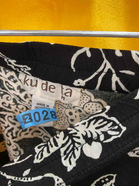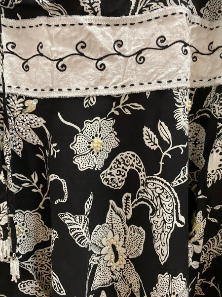 Stylish women's skirt featuring a black base with an elegant white floral pattern.