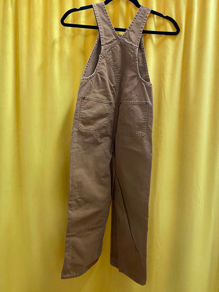 Durable boys denim overalls by Carhartt in a classic brown color.