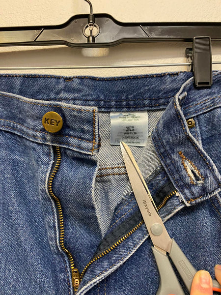 Classic Key blue denim jeans workwear with a straight fit. Features front and back pockets, belt loops, and a button closure. Slightly faded for a casual look. Durable denim material suitable for everyday wear.