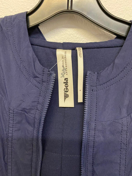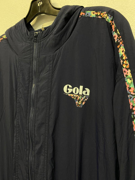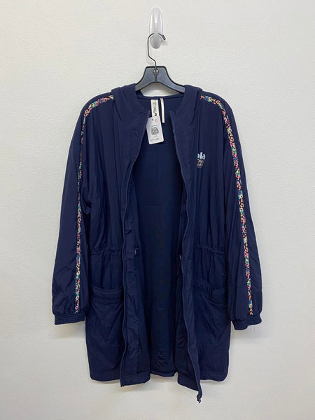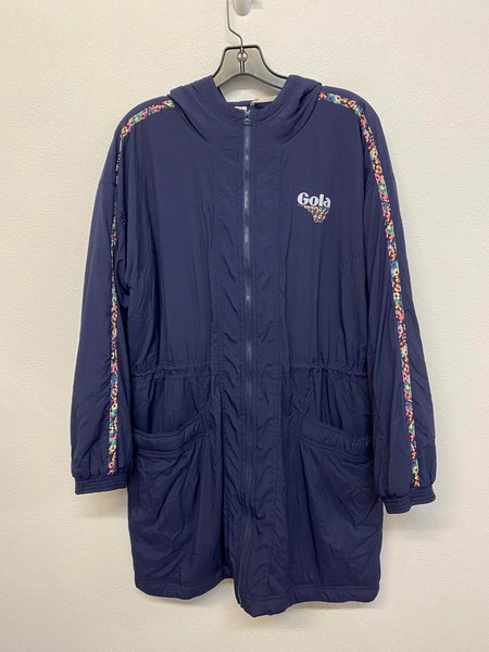 Gola exclusive Anthropologie oversize navy utility jacket featuring a full front zipper and hood for added protection.
