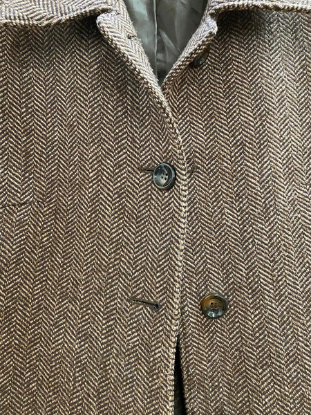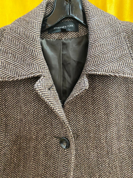 Classic women's coat by Jones New York featuring a brown herringbone pattern.