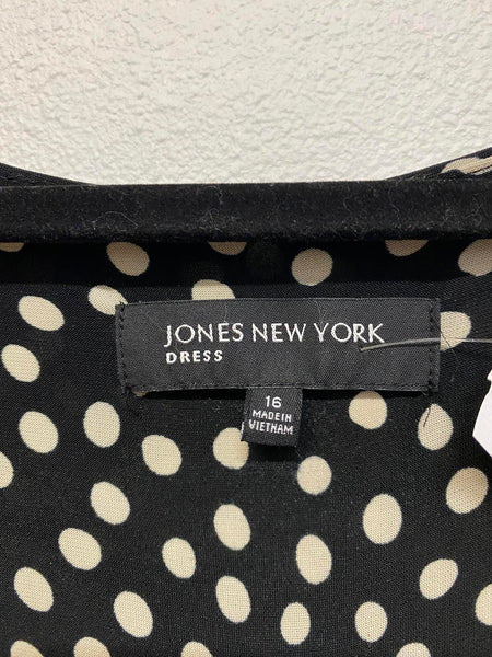 Jones NY Cute Black Polka Dot Cap Sleeve Midi Dress Stretchy Size 16