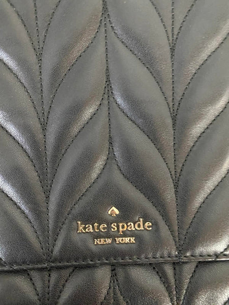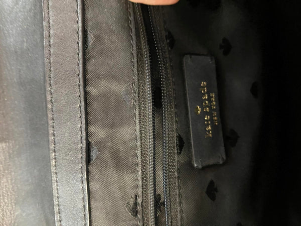 Interior includes a zippered pocket and fabric lining with Kate Spade logo pattern.