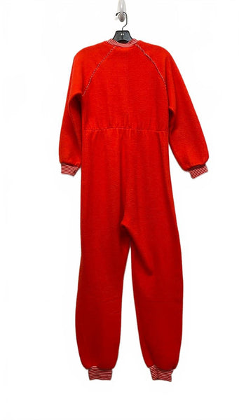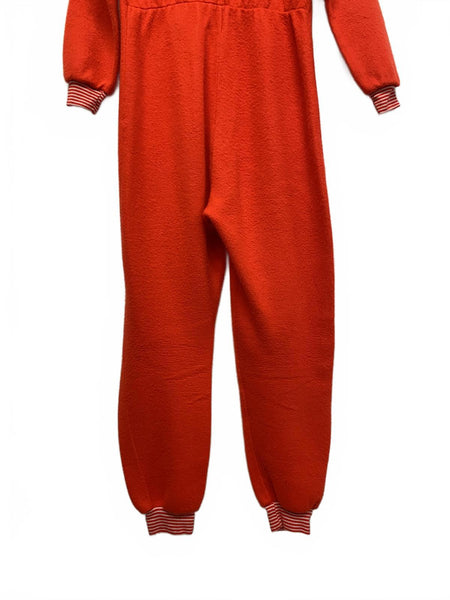Women's cozy jumpsuit pajamas in vibrant red fleece material.