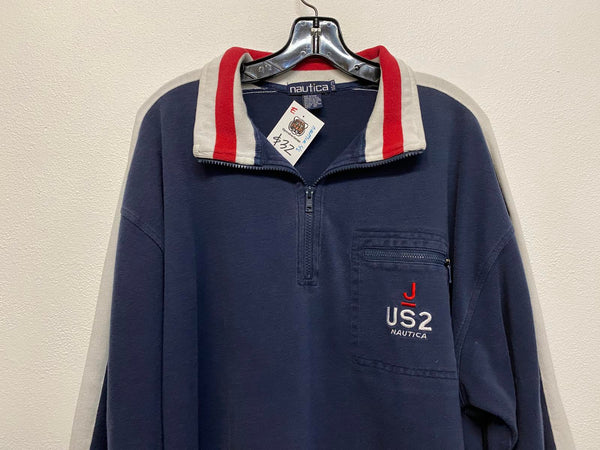 Nautica men's pullover sweatshirt featuring a quarter zip closure.