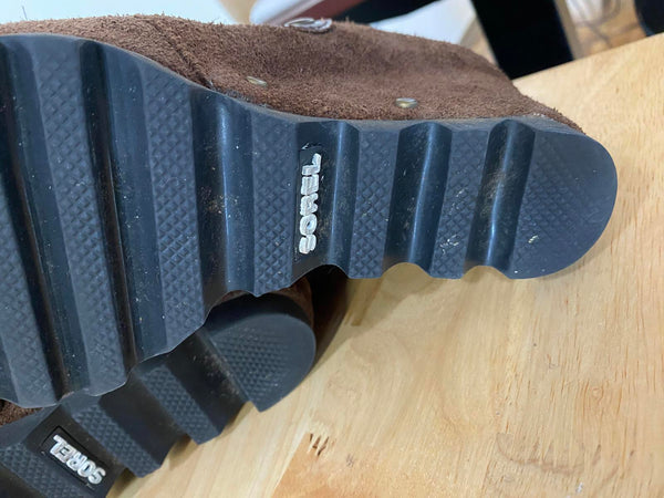 Rubber sole with tread for added traction.