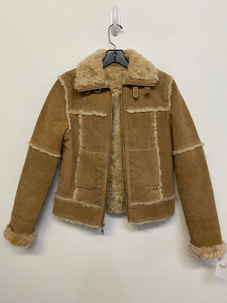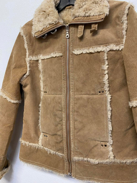 Brown Real Suede Wilson’s Leather faux shearling jacket with suede-like exterior and soft, plush lining.