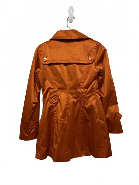 Stylish Jessica Simpson women's trench coat in vibrant orange color.