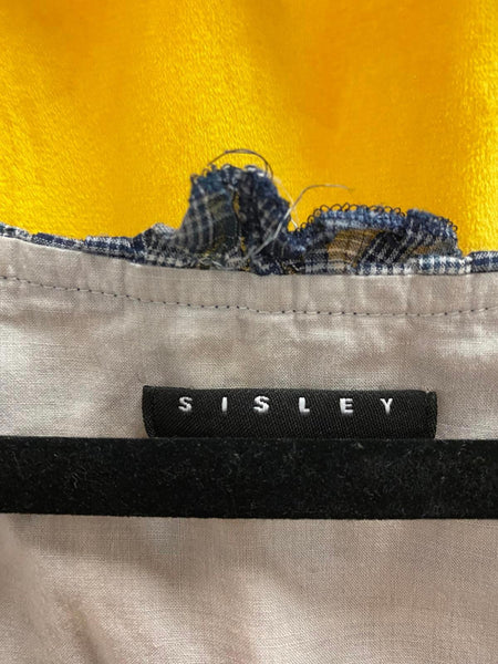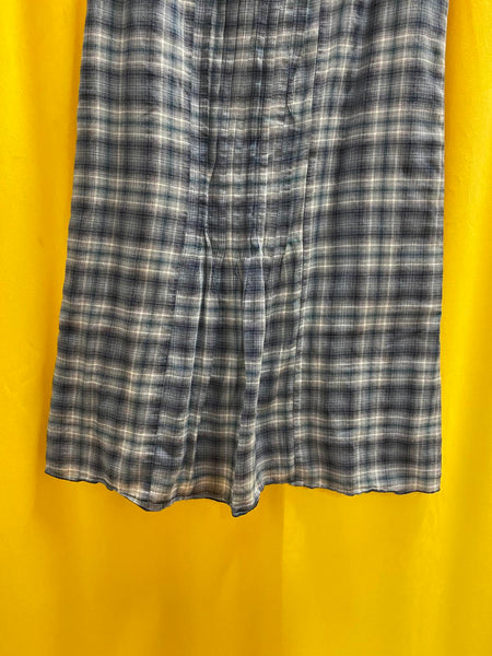 Y2K Sisley Blue White Plaid Ruffle Sleeveless Midi Dress Size Medium Designer