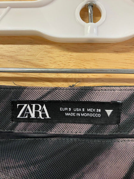 ZARA Women's Grey Pink Lavender Micro Mesh Midi Skirt Wash Lettuce Hem Small