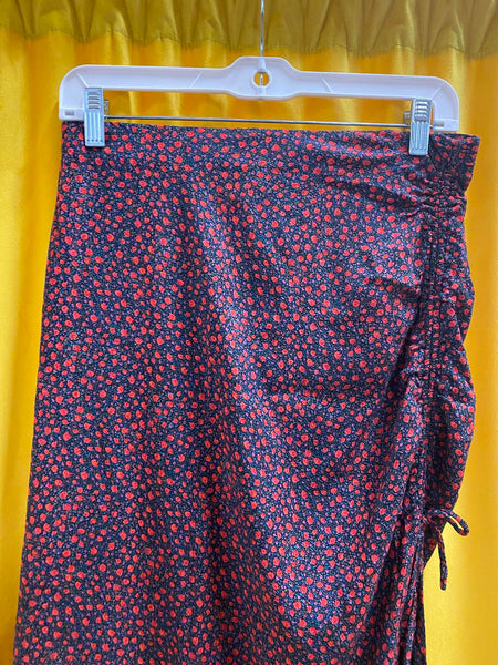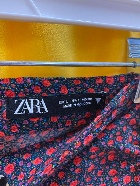 Elegant ZARA women's midi skirt featuring a small floral print pattern.