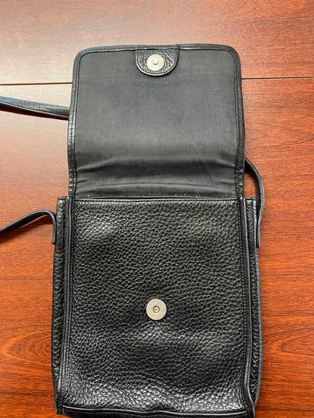 Black leather men's shoulder bag with a long adjustable strap for comfortable wear.