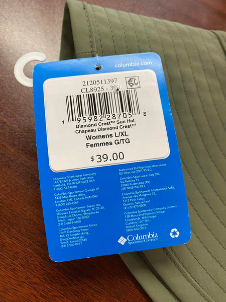 This Columbia Diamond crest sun hat features a wide brim for excellent sun protection and an adjustable chin strap for a secure fit. Made from durable fabric in an olive green color, it is perfect for outdoor activities like hiking, fishing, and camping. Lightweight and breathable, it offers comfort and functionality in one.