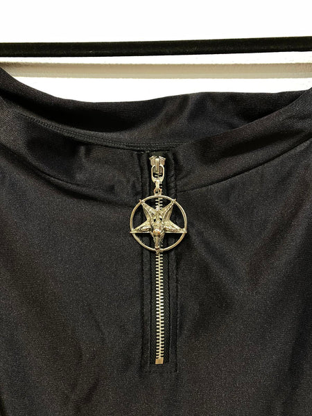 Killstar Black Off-Shoulder Top with Goat Pentagram Zipper Pull Size Large Goth