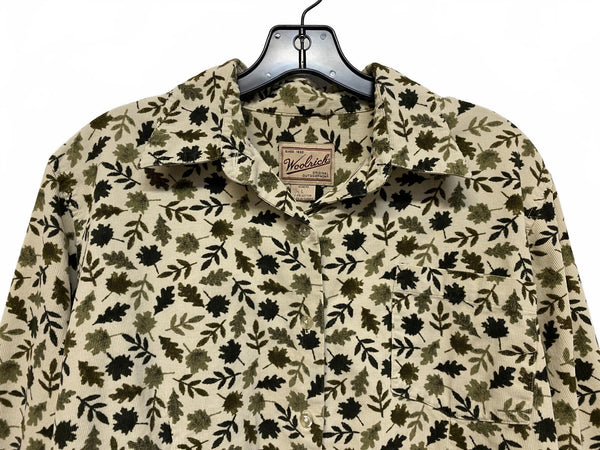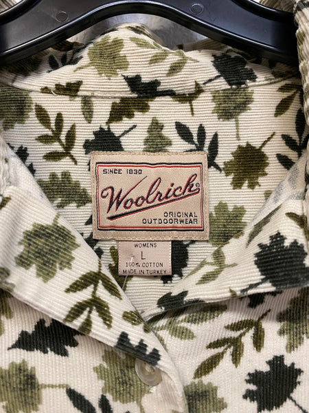 Woolrich Green Leaf Fall Corduroy LS Women’s Top Size Large 100% Cotton Autumn